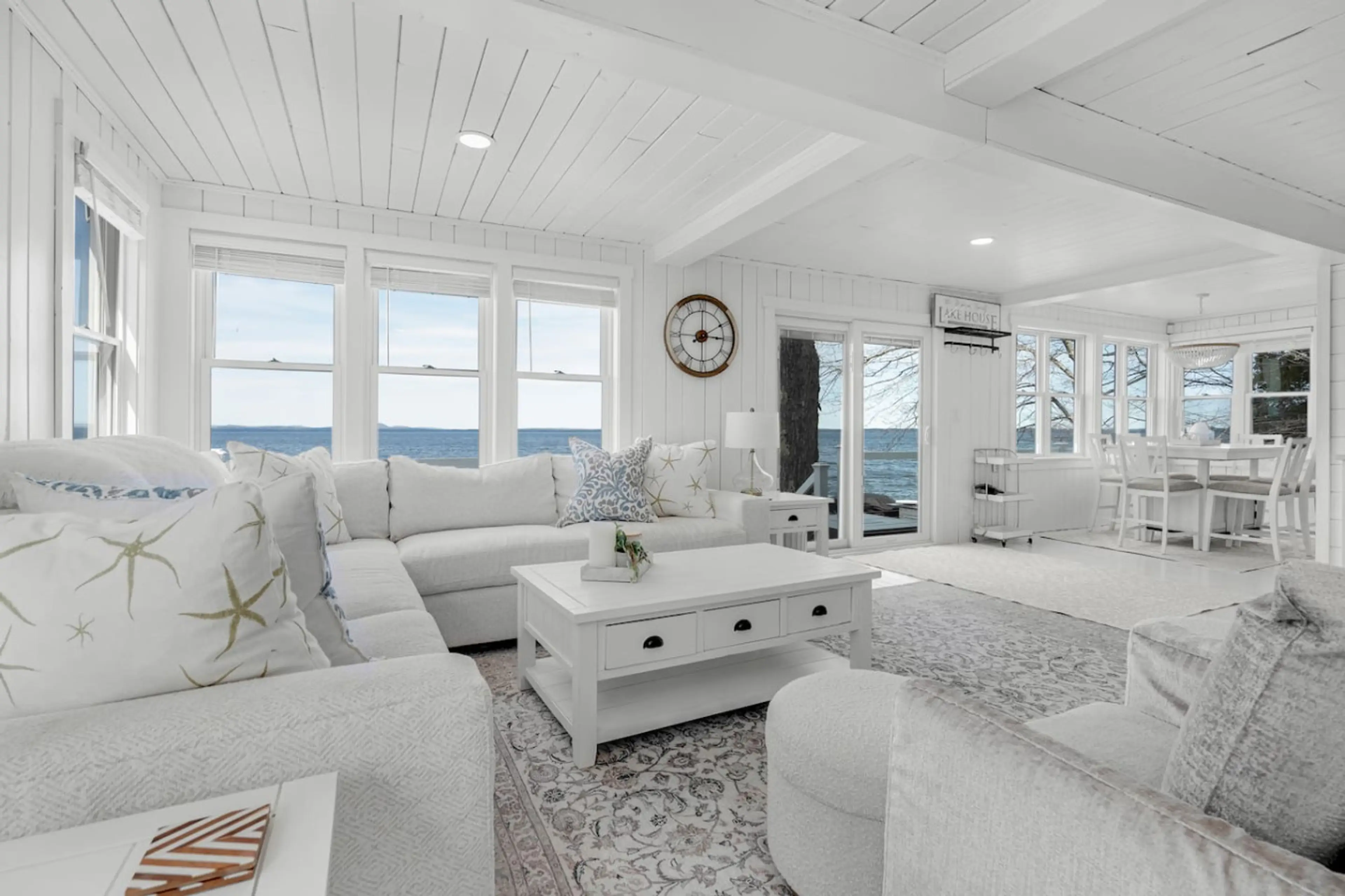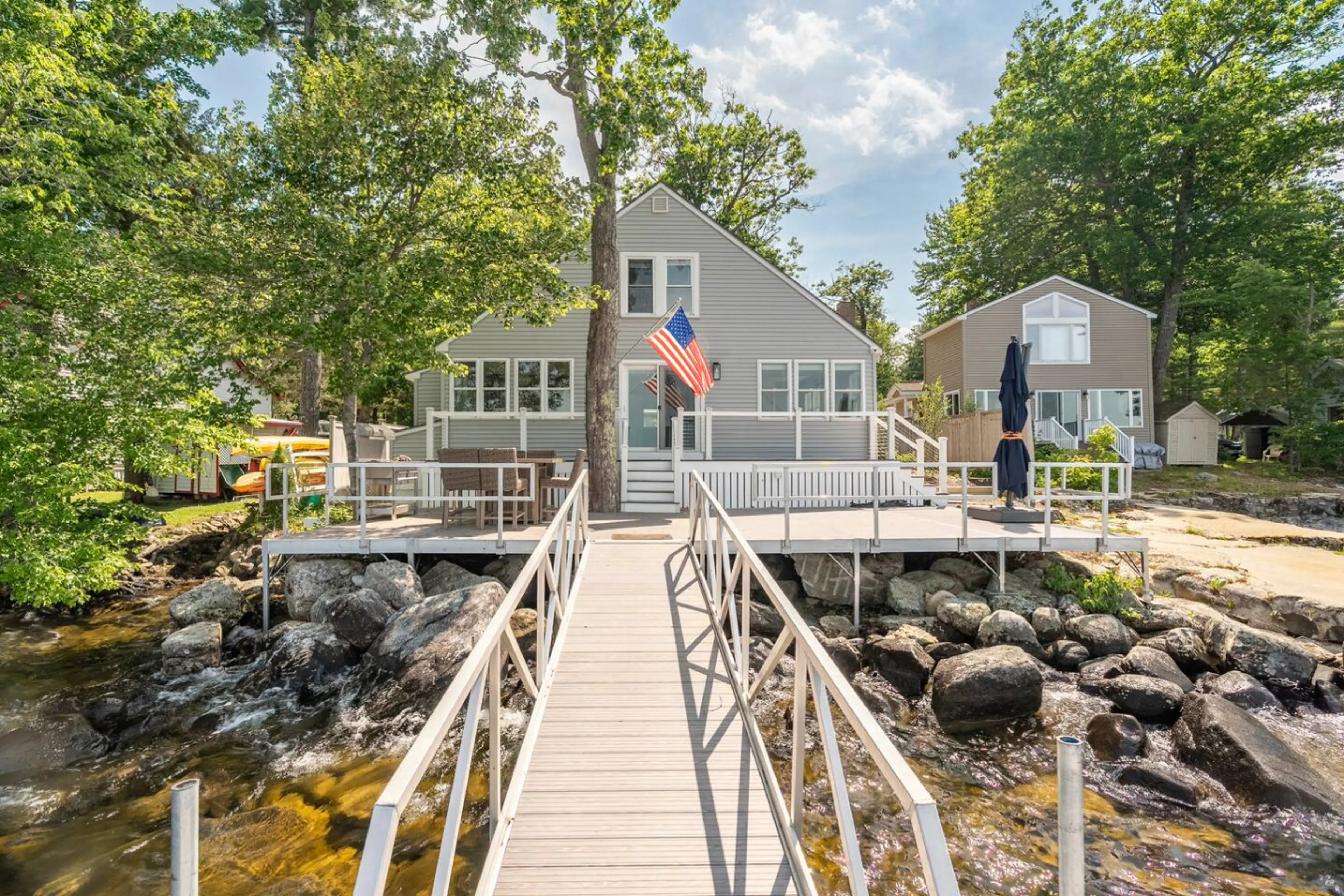 This stunning waterfront lake house offers beautiful interiors and unforgettable Sebago Lake views. Ideal for families, the home sleeps up to 10 guests. Enjoy spectacular sunrises and sunsets, 60 feet of private waterfront, and amenities including an overwater deck with outdoor dining and grilling, ...